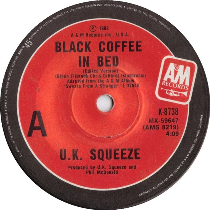 Black Coffee In Bed is a 7" by Squeeze from 1982 released on the A&M Records label.